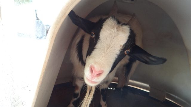 Oh, and sweet, shy, little Laverne says hello. Oh my goodness how I love that little goat. She talks to me with her eyes. I have to watch out for her because her sister is a mean girl and won't let her eat.