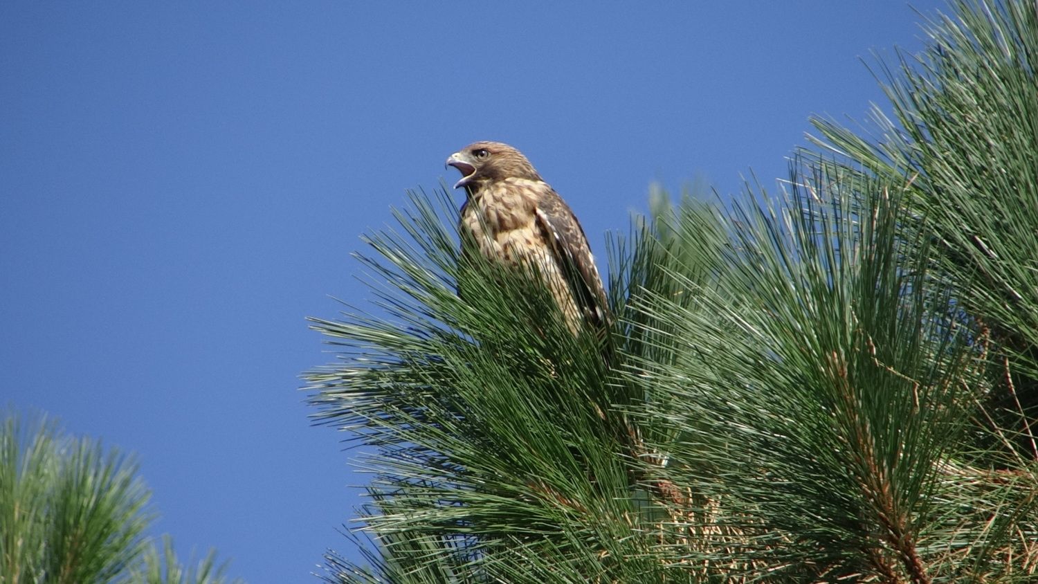 I got too close to their nest. they have been raising babies in our yard. he was really mad. His "partner" actually did a low fly by right over my head. tried to get it on video but it went too fast.