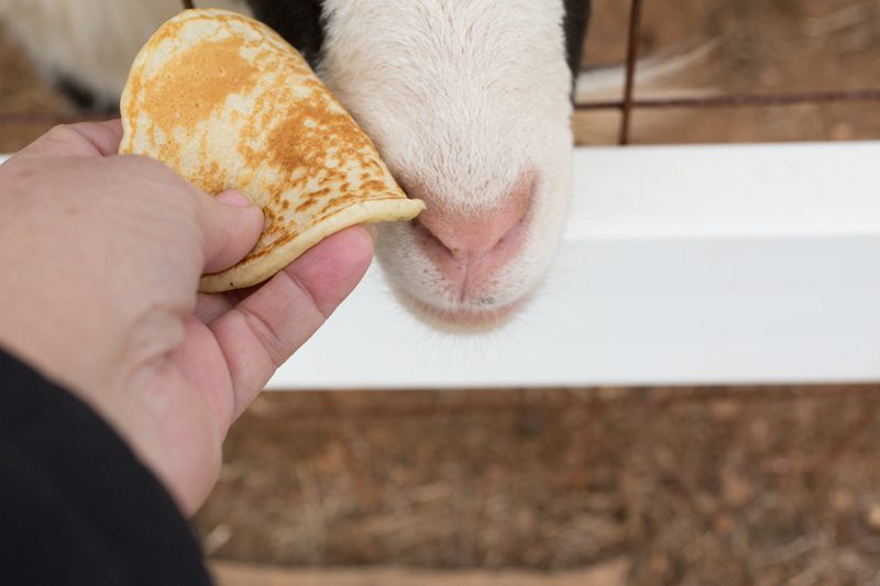 Jack was just playing. I had been acting like I was going to run at him and then he would come towards me and suddenly turn and snort. By the time I remembered I had a camera in my hand, we were both tired. Diana loves pancakes, but not these. Neither did we, that's why the animals got them. Goats wouldn't eat them either and they love pancakes too.