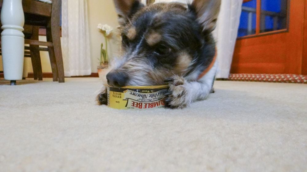No, we all went pescetarian about four months ago. Tucker has always loved fish. Michael eats tuna right from the can and lets Tucker have it when he is done. Only the ones without sharp edges! He'll work to get every little bit out of that can for an hour. Even his favorite dog food is salmon. So that cat is out of luck! I might throw him a fish bone from time to time if he keeps hunting gophers.Mary I had to google that word, so does that mean Tucker is forsaking beef, etc, for FISH. He's eating tuna maybe so the cat can't have it.