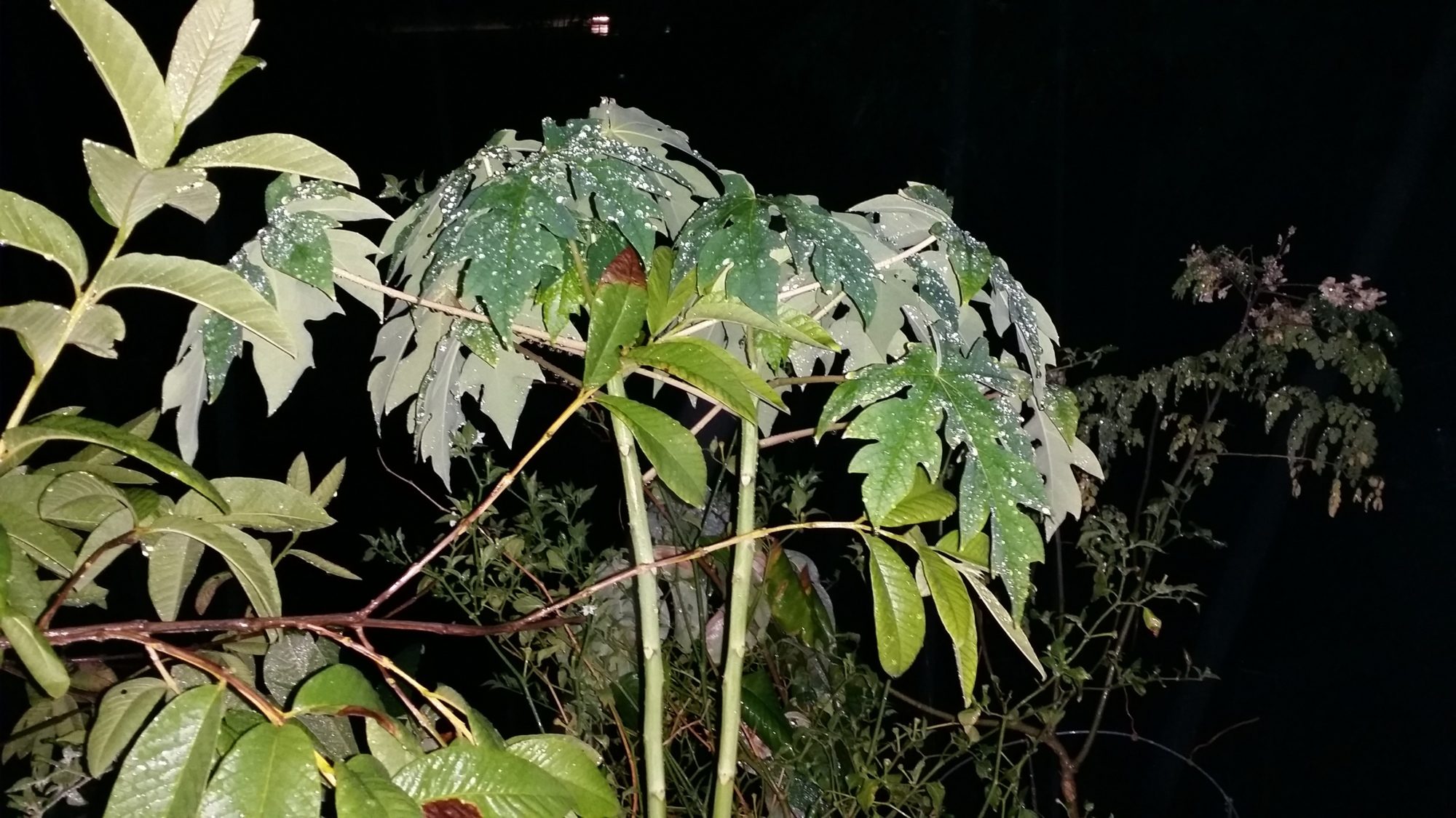 View outside my door just now. Guava, Papaya, pepper and moringa olifeira in the right back