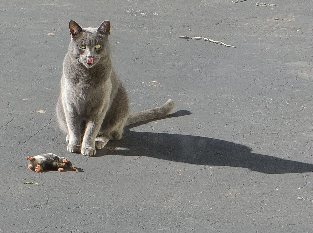 No, the kitty left an evil creature outside my kitchen window while I am trying to make jalapeño poppers.But the good kitty ate an evil Mole creature!