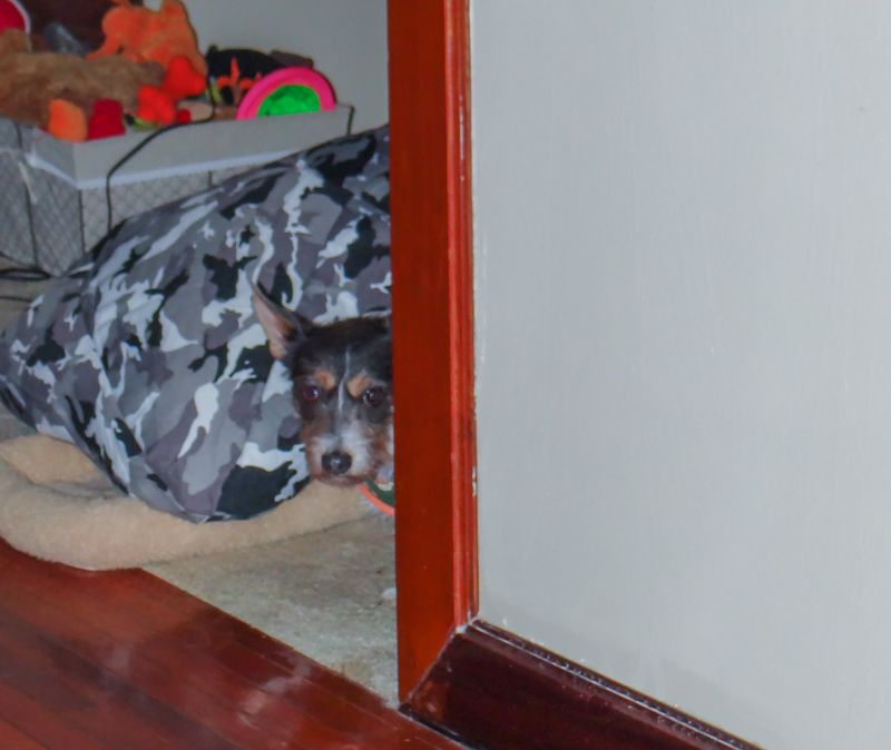 Tucker was jealous so he dragged all his toys and beds into the foyer. He got caught though.