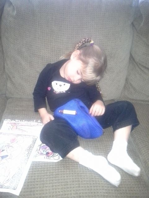 Coloring is hard work! She crashed about 2:30 and didn't wake up until after the bus came at 4. It's nearly 10 PM and she's still awake (but laying in her bed quietly) so I'm paying for it now!
