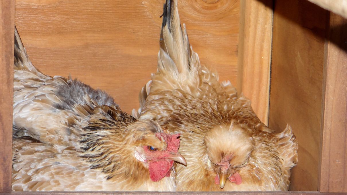 I'll never have my own source of eggs! I grabbed eight eggs from under these two goofballs and tossed a broken empty shell on the floor of the coop. I hurried in to candle the others. There were five that had started developing, three with viable embryos, and two cracked quitters. I took the three viable eggs back out to them. While I was gone, they had retrieved the empty shell from the floor and were sitting on it.I am so happy that I have my own source of eggs!