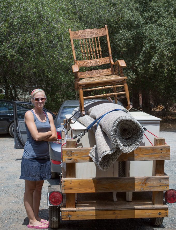Michael's daughter is starting a home business repurposing and upcyling furniture. I overestimated the amount of stuff I would be able to fit in this house, so I had a lot of stuff to give away. Jenni has come down with her little trailer two days in arrow to pick up loads. Michael loaded it for her today.![]()
