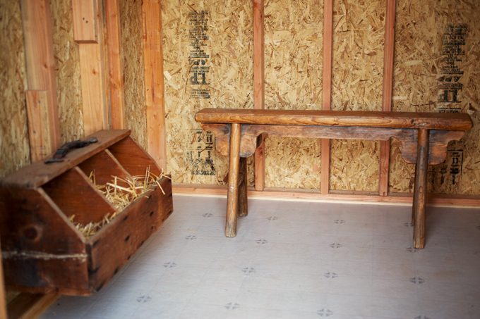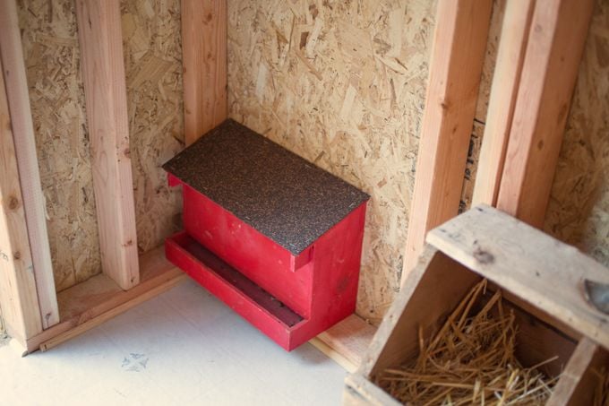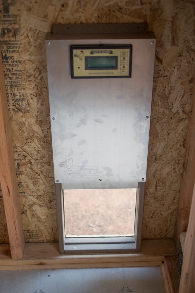 Speaking of the coop I worked on the inside a bit today. Finished the quarter-round molding, installed the new automatic pop door. I couldn't get the one I had been using so I am trying a new version that uses GPS to set the timer for opening and closing. It closed tonight! I am also using the little red feeders I saved from the last house because I never put them up. I had this fake saddle stand on the porch at the last house. I decided to use it as a roost here! The board is smooth and five inches wide. Due to the small size of the coop I want low roosts this time. I am also using my antique nest box. I thought "What the heck, why not use it for what it was made for." I realize they'll get crapped up but That's ok.