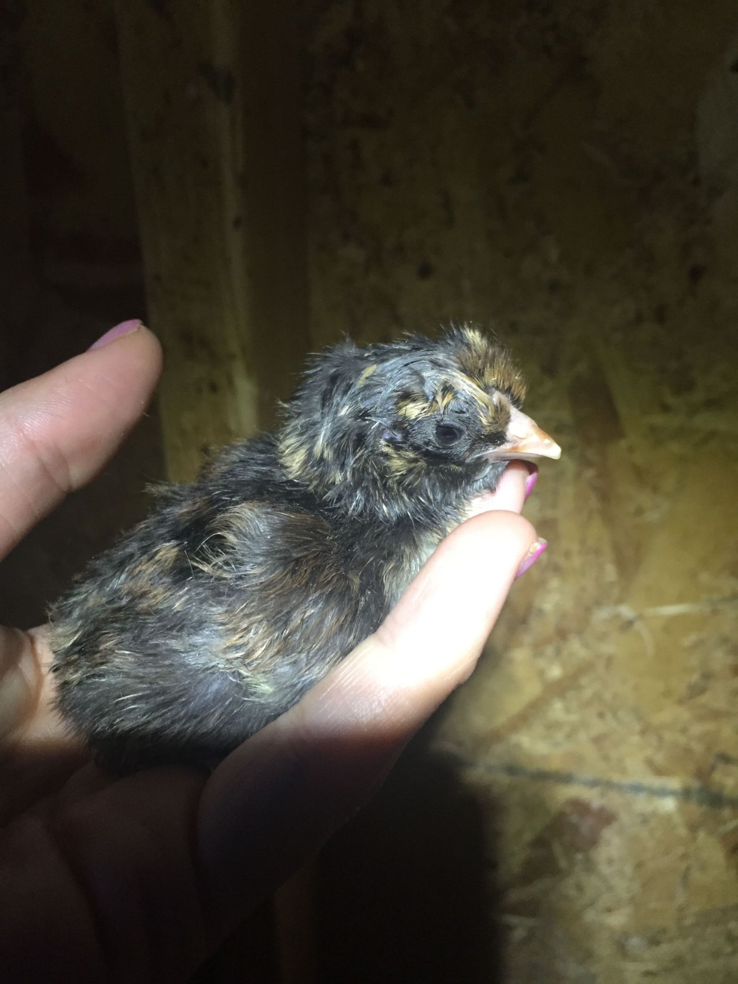 Checked on the broody this morning. The olive egger chick hatched, but it is different than most I have hatched. It hatched out of an olive colored egg from my Splash olive egger. Father is a Barnevelder, so the chicks usually hatch out solid blue. This one has strong Barnevelder markings, so it will be interesting to see how it feathers out.