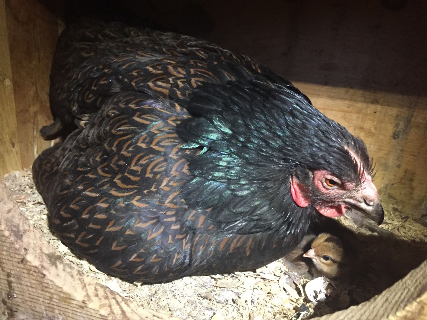 And momma Barnevelder, before I moved her and the babies to private quarters. She is a true Barnevelder, but dubbed herself on fencing when she was young.