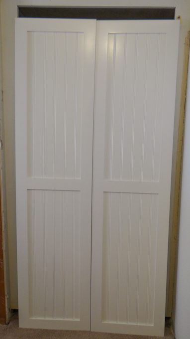 My cabinet doors for the linen closet. Just leaning against the wall. The hardware is dark. I think it is going to look gorgeous!