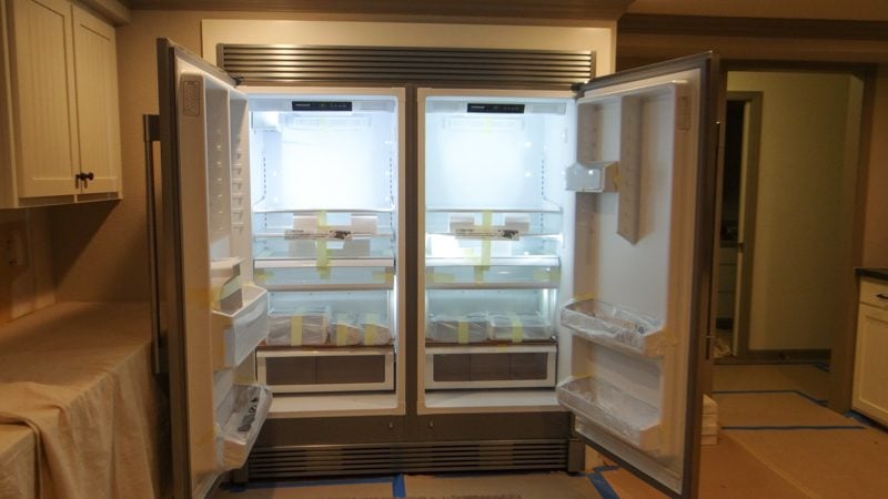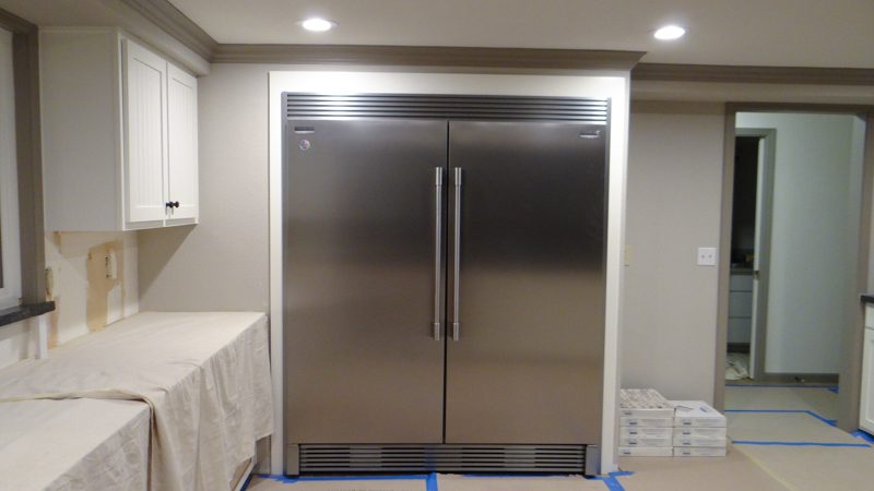 Here is my ridiculously huge fridge and freezer (for two people). Eric assembled and installed the trim kit yesterday and today.