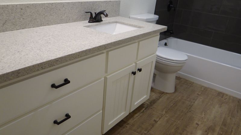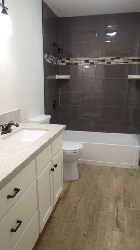 It's absolutely beautiful. I love the backsplash and the lights. The pantry door is growing on me, I like the look. However, if it were in my house, I wouldn't want it visible into my pantry.............but you are a neat freak, so it will work great for you. Your bathroom looks fantastic as well.