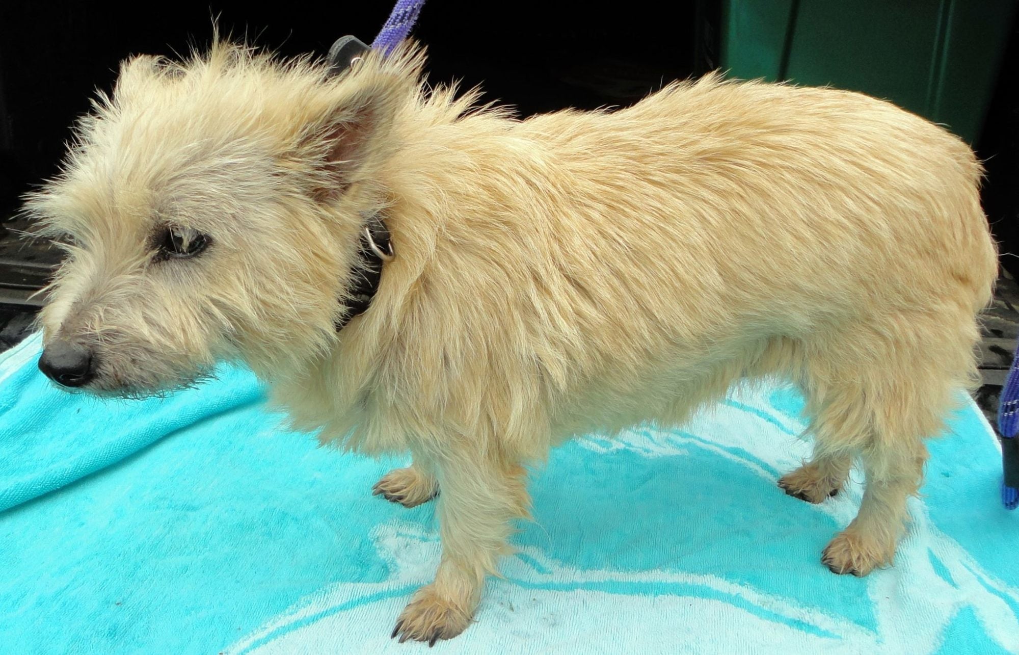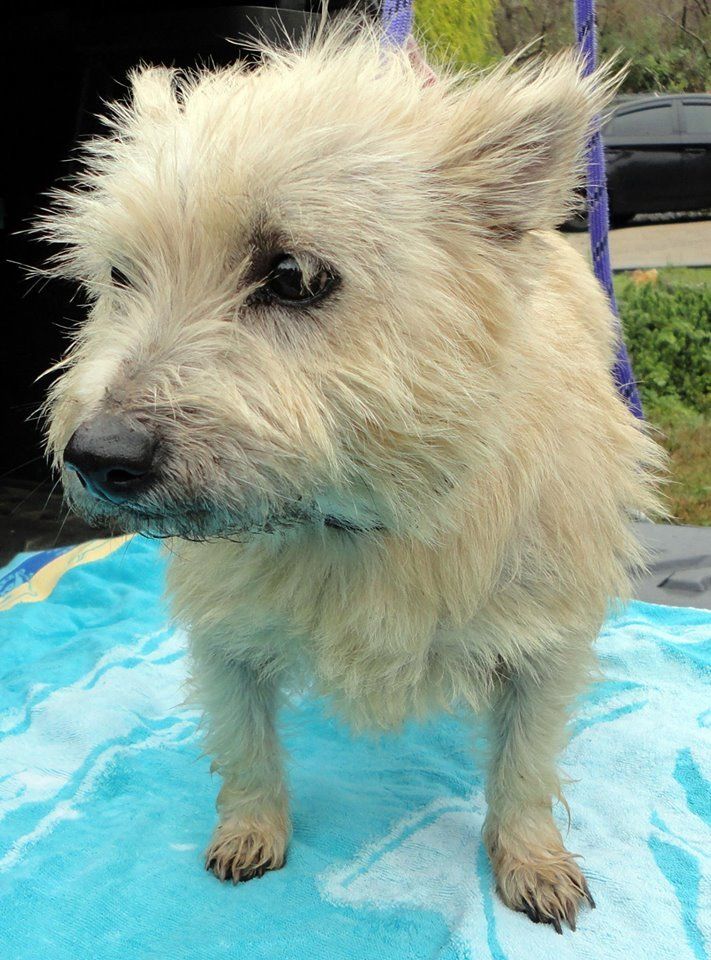 So, this is our new girl, Sophie. Sophie is a Cairn Terrier, 4-5 years old. She weighs in at 20 lbs now. (5 lbs of that may be dirt).