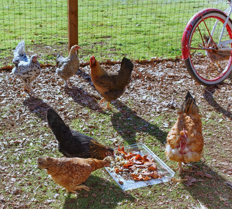 I put everything on a plastic tray and took it to them about high non, as evidenced by the lousy pictures. Judy immediately put herself in charge of the feast and decided that she and Stella were the only ones allowed to eat. So, I took the tray and tossed all the food on the ground in various locations because she's old and can't be everywhere at once. They gobbled it up! Get it? Gobbled it up?