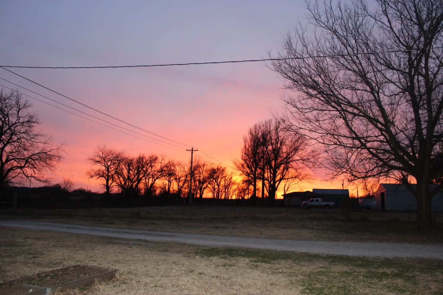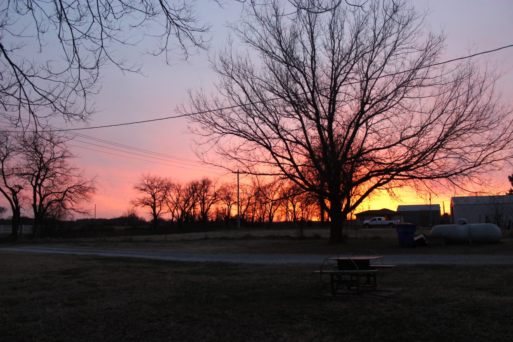 Caught this sunset last night. We get some really spectacular sunrises and sunsets in Oklahoma in the spring and fall. :) Not nearly as prettily framed in as Mary's shots though!