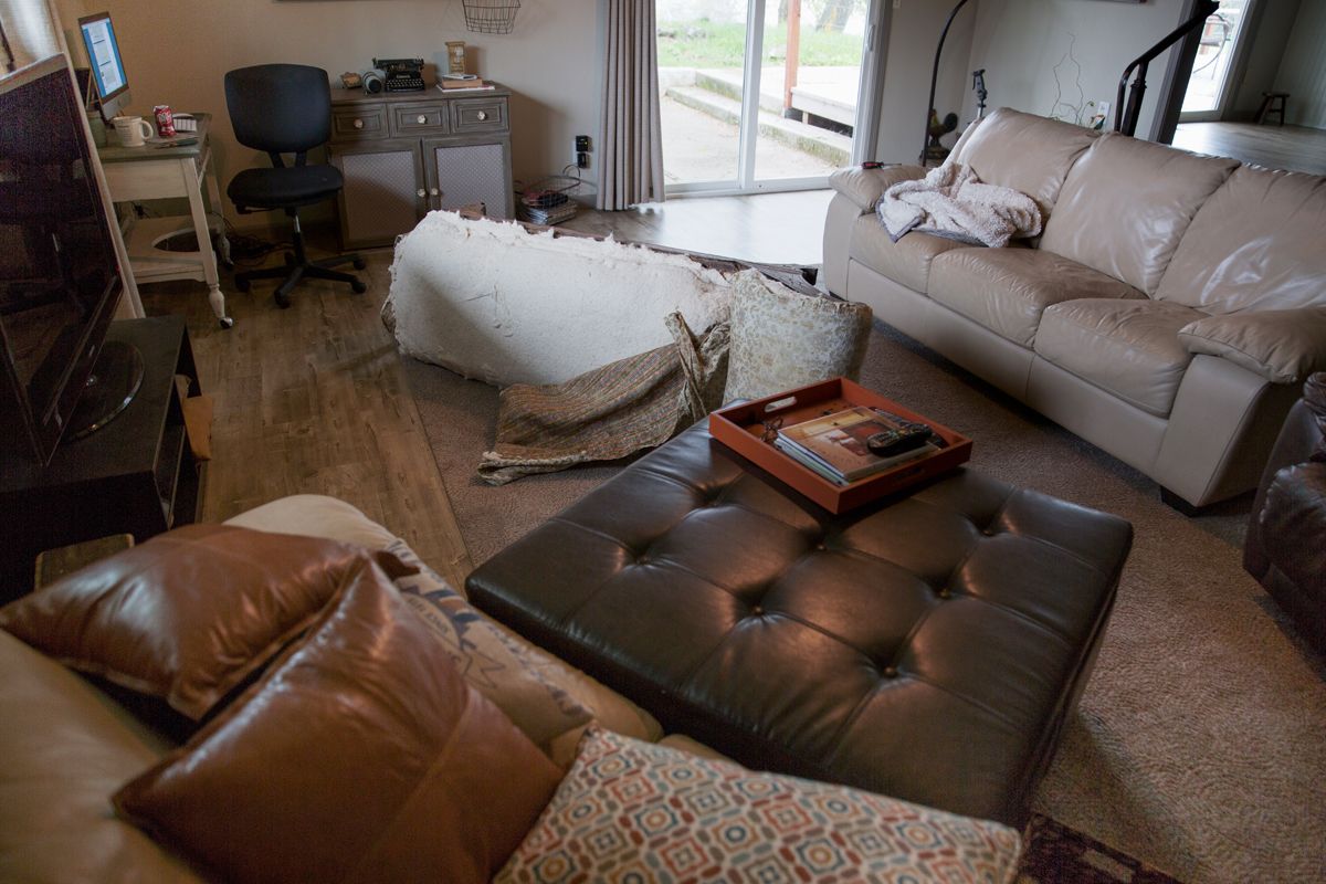 OMG I have torn up my living room to work on the ratty fainting couch I bought for 20 bucks! Wait till Michael gets up and sees this! Yesterday I was annoyed that he left a ball point pen on the kitchen table!