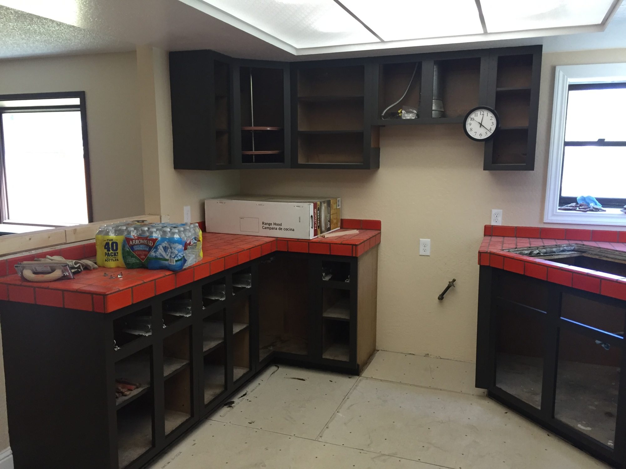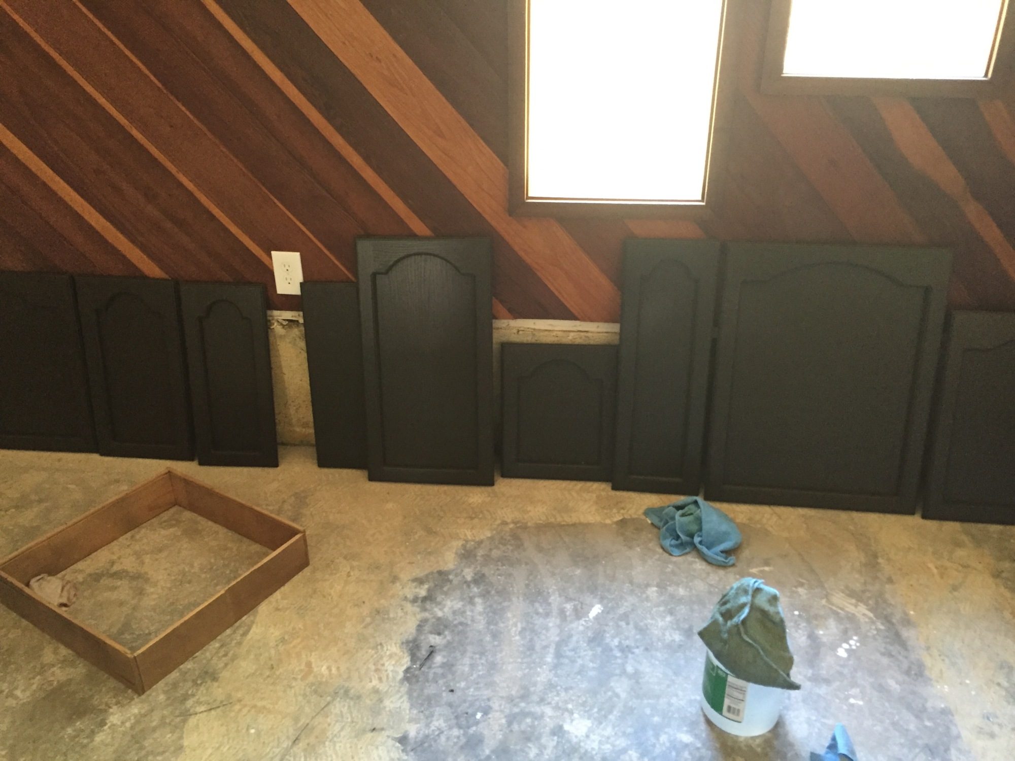 After 3 days of painting, my biceps are sore. I painted 11 drawers, 2 face frames (for in front of the sink) and 23 door fronts. (inset panel) I hope to never have to refinish cabinets again in my life. I also helped weed whack, so that could have contributed to sore arms.