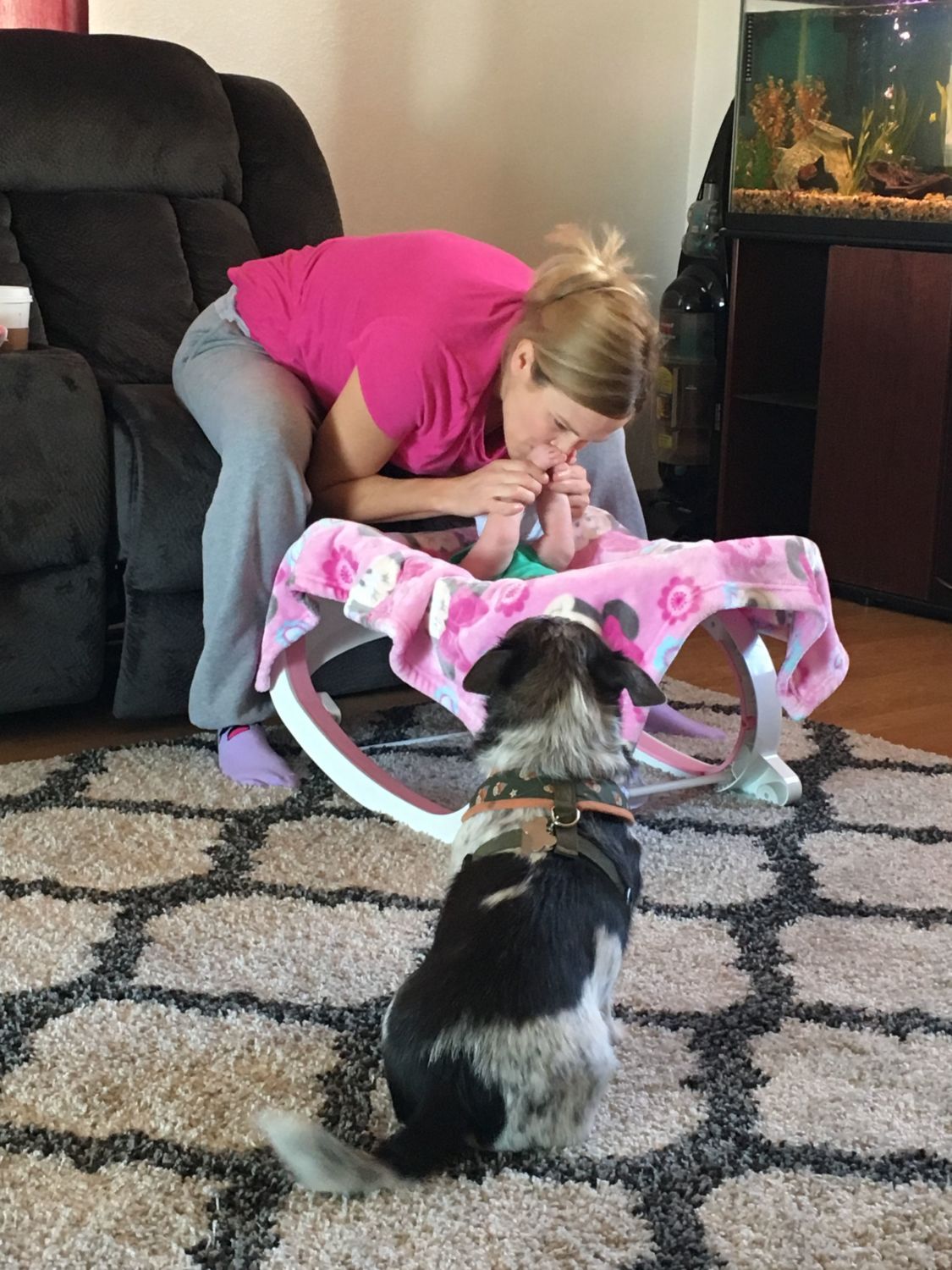 Apparently a baby is the right distraction to use on Tucker.