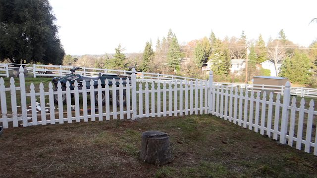 That really looks great Mary... Tucker will be able to see his Mama when your playing with the rest of your wonderful animals .... I'm glad you found each other. Very Lucky!Michael built a fence to enclose a little yard for Tucker. We used 8 foot preassembled sections and had to get creative with the slope of our land. Michael even moved in a little stump that he likes to use as a fire hydrant. The dog door is in the utility room and unfortunately Tucker is afraid of vinyl flooring and he won't walk in there. We may have to re-locate the dog door to where I wanted it to go. We'll see. Maybe he will want to go out badly enough to brave the vinyl floor.![]()