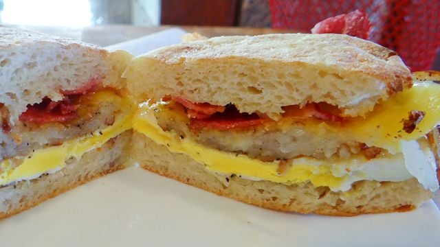 I tried a new take on an Egg McMuffin this morning. Instead of serving an oval of hash browns on the side, I cooked mine in round patties, covered them with cheese, then served them on the sandwich! Oh, and I use regular bacon instead of Canadian bacon. The only negative comment was that the hash browns could have been crispier to which I replied, "Then you should have gotten out of bed sooner and they would have been!" p.s. I started my online food photography course on Friday. Hopefully these pictures will get better!