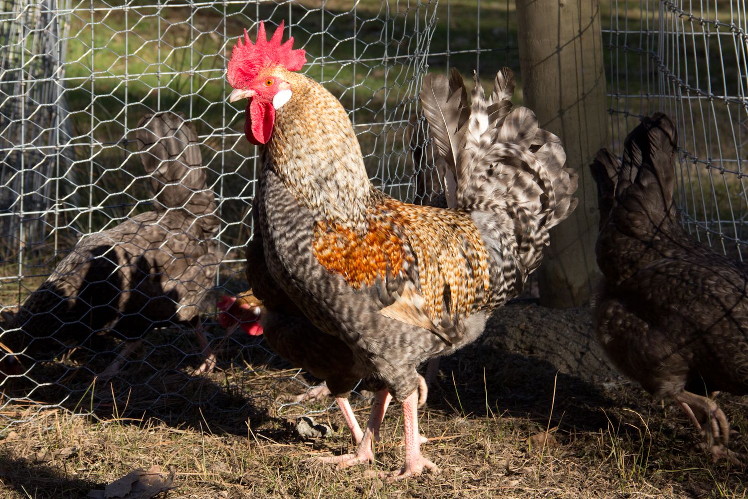 They are a secret project bird I am working on. They were the only ones out in the yard. All the others were smart enough to run to their coops. I'll just call them FBD's (Fierce...but dumb)!