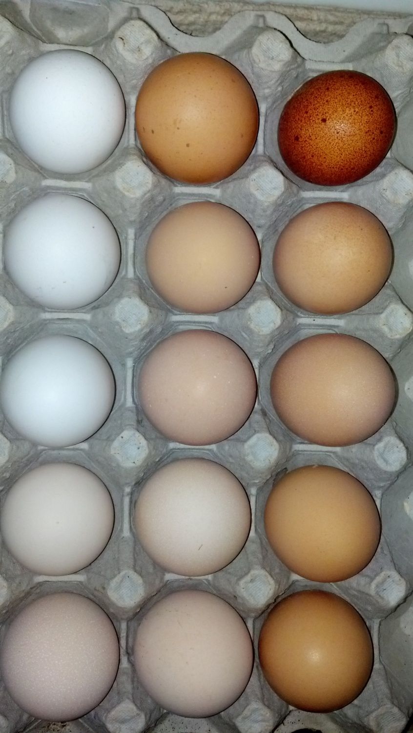 Sorry, I did not take a food picture. I do have an egg picture though. These are eggs I collected yesterday. They are from all of my layers. The dark reddish one on the left is the second egg from my Partridge Pene. The blue one on the right is from an SG Dorking crossed with a Wheaten Ameraucana: