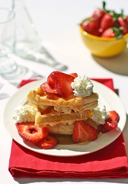"Excellent work for being outside which is not an easy thing to do. Great light direction and the hard light actually works well with the subjects although it's tough to shoot whipped cream in such hard direct light. Holding up a sheer diffuser between the sun and subjects might work well here. Having a nice translucent liquid in the glasses would also look nice but you might have to just use one and pull it back so the shadow from it does not run into the plate."