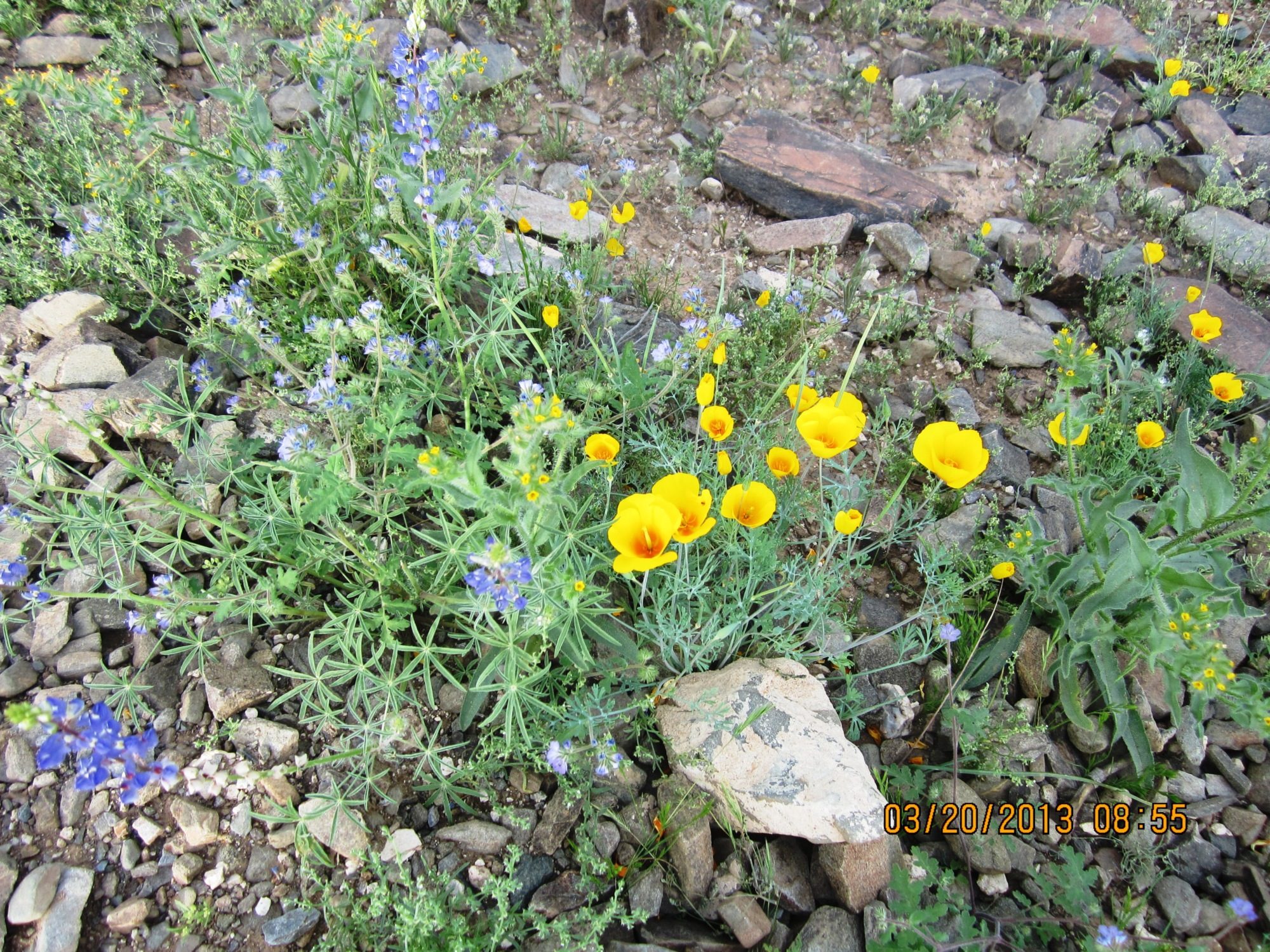 pretty pictures. Nice Lupine and looks like California poppy from a distance. Ocotillo aka Octopus plant