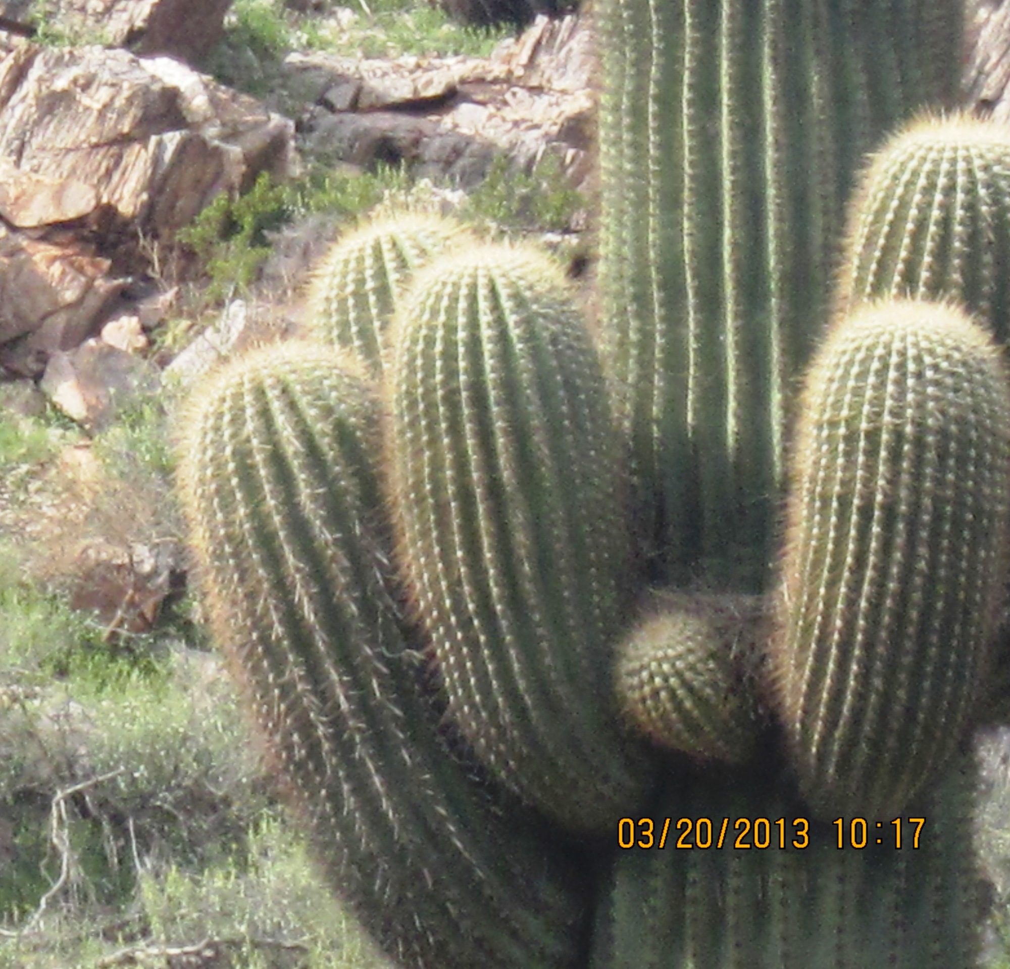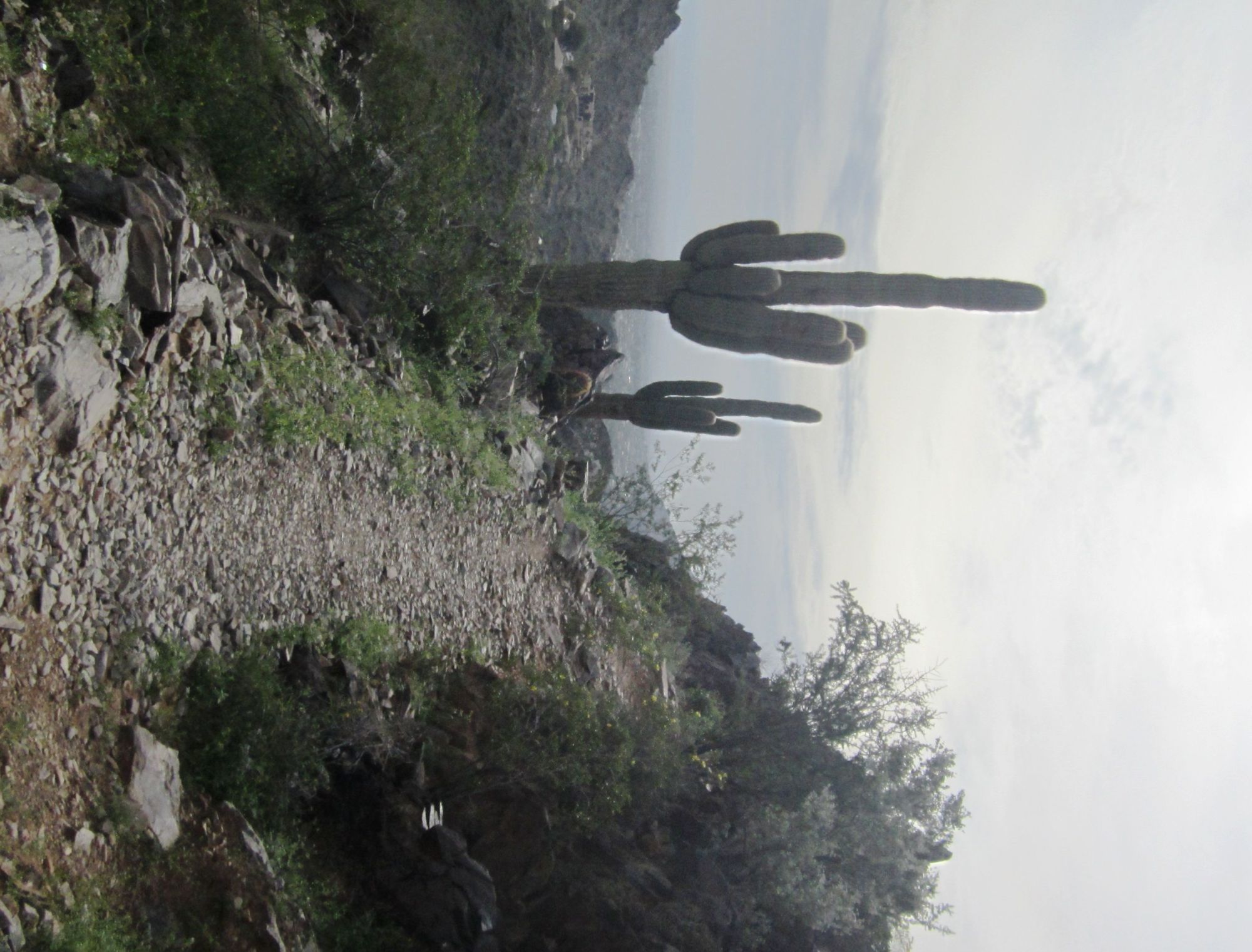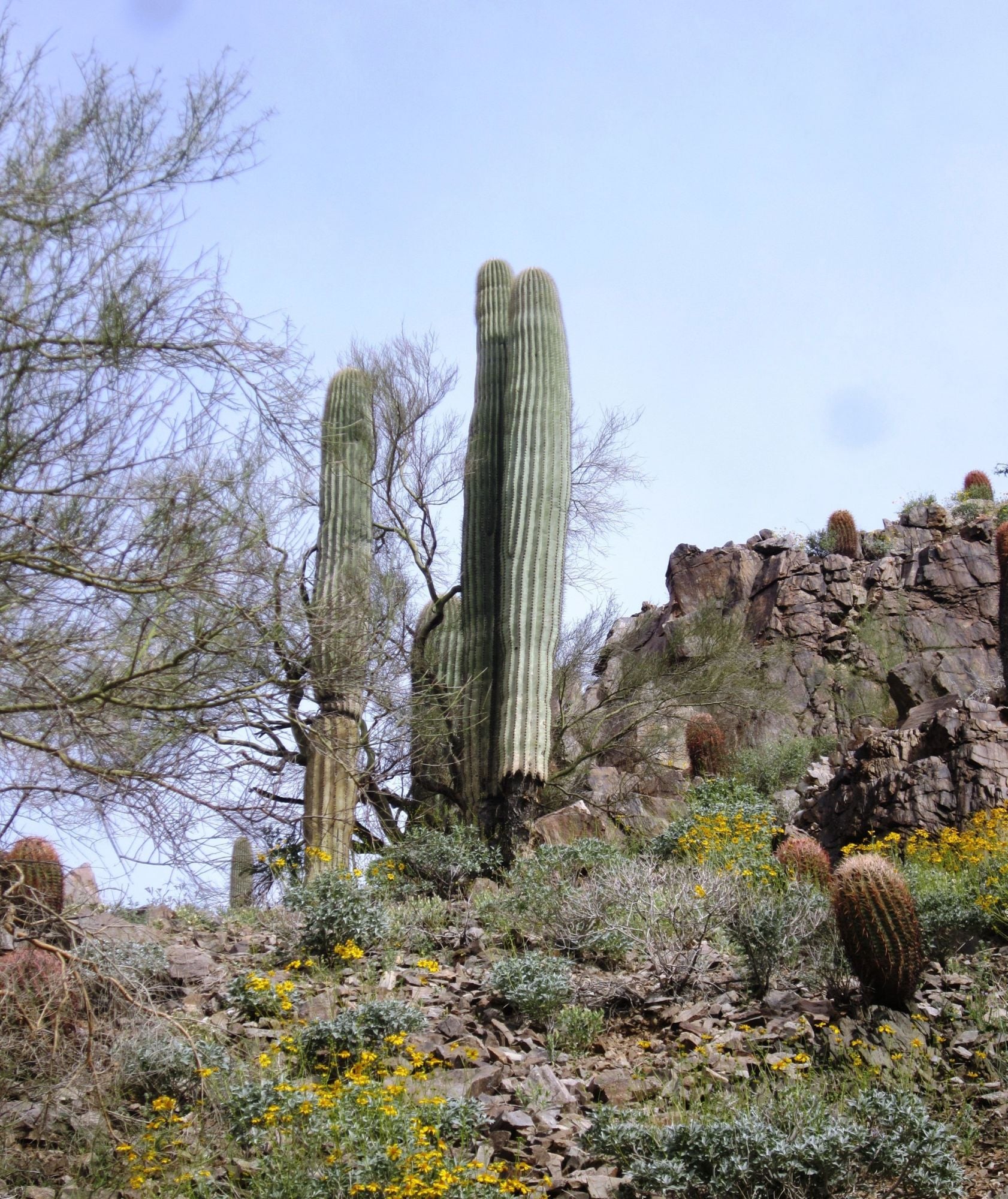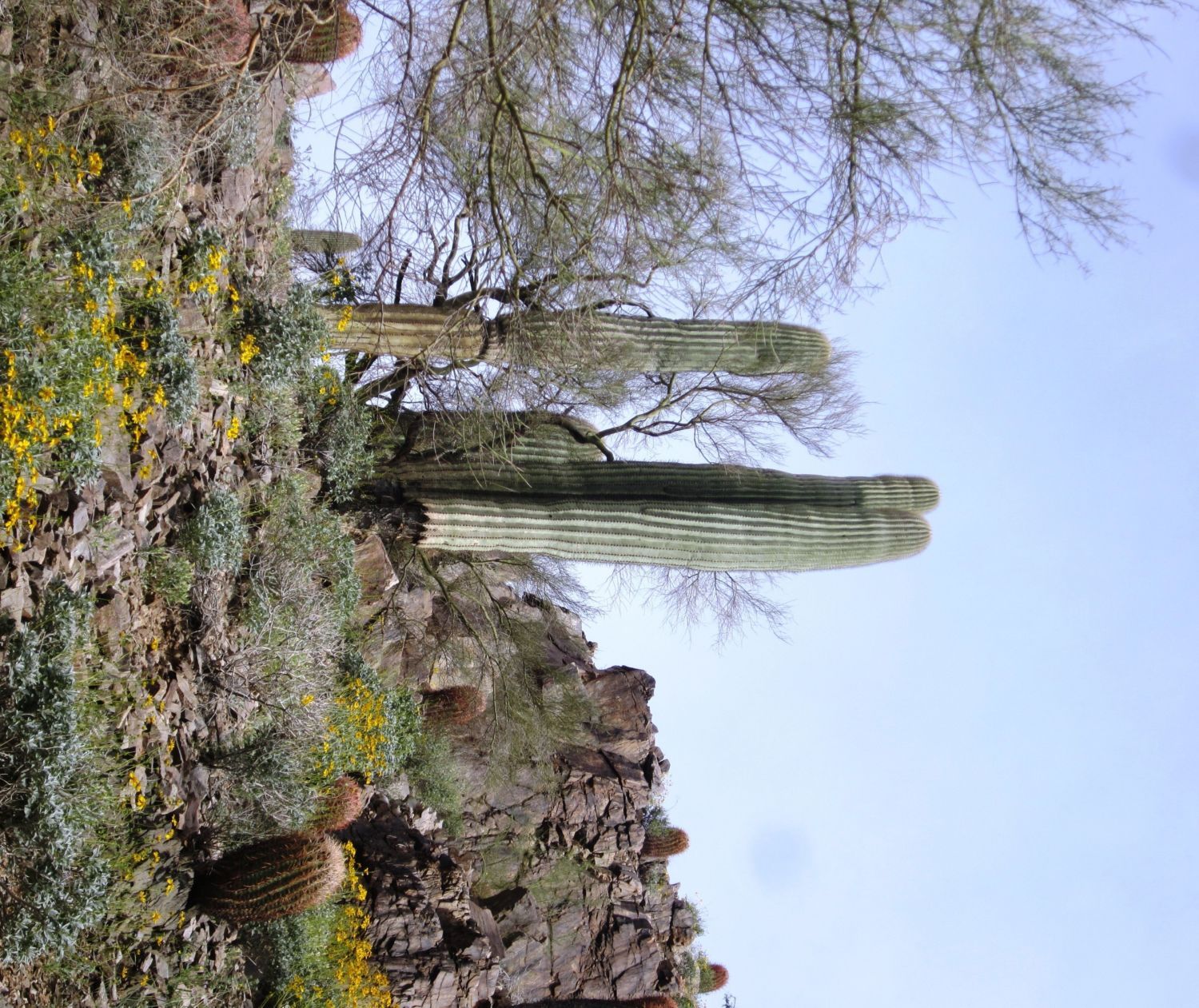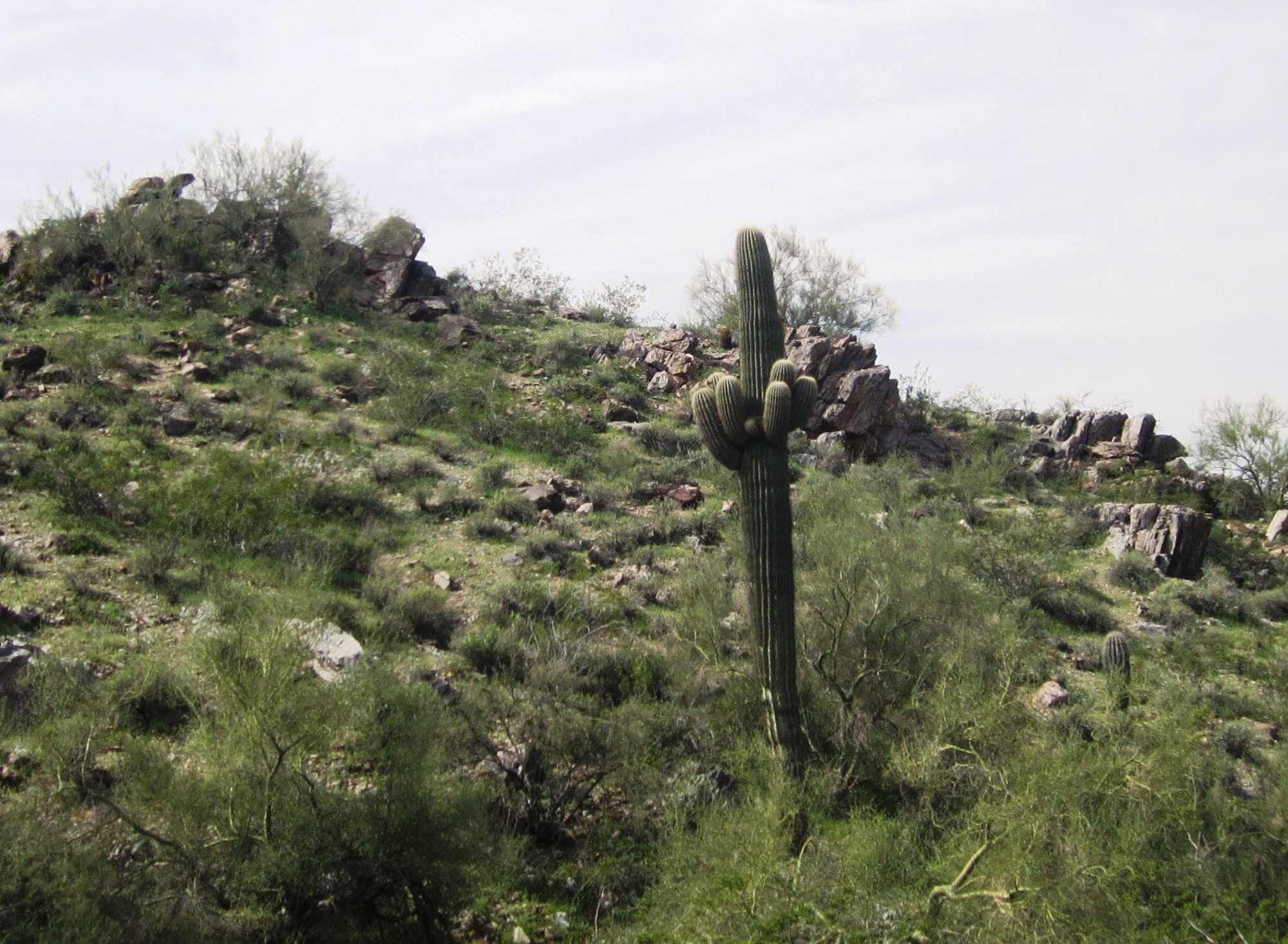 A very young (40 or 50 year old) saguaro, growing in the shade of a Palo verde tree.