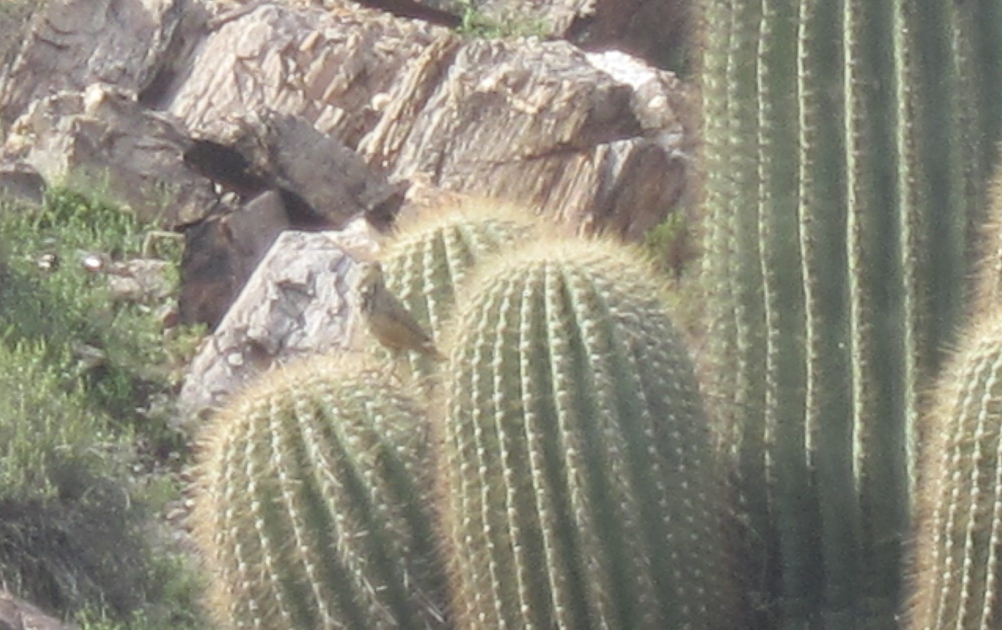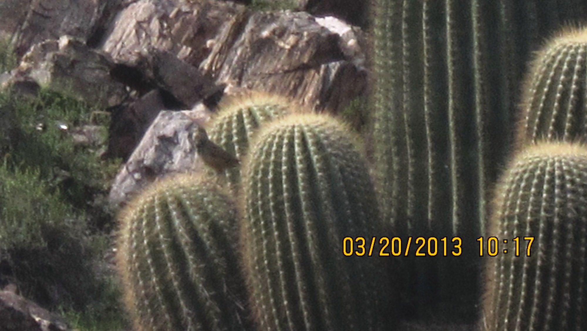Mama Cactus Wren, waiting for her mate to return with goodies for the chicks in the nest.