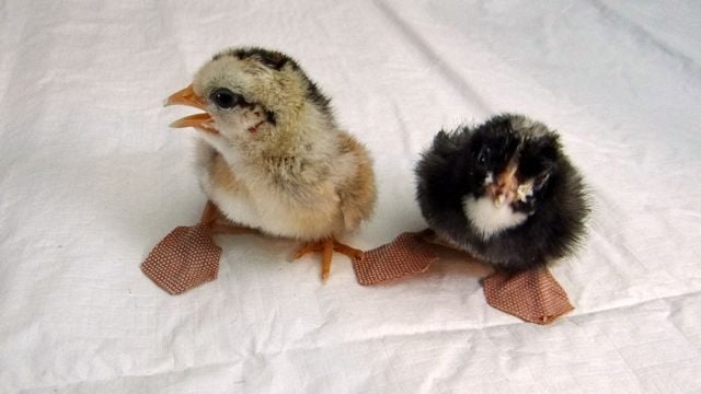 This little guy's foot is turned completely under and the leg is splayed.