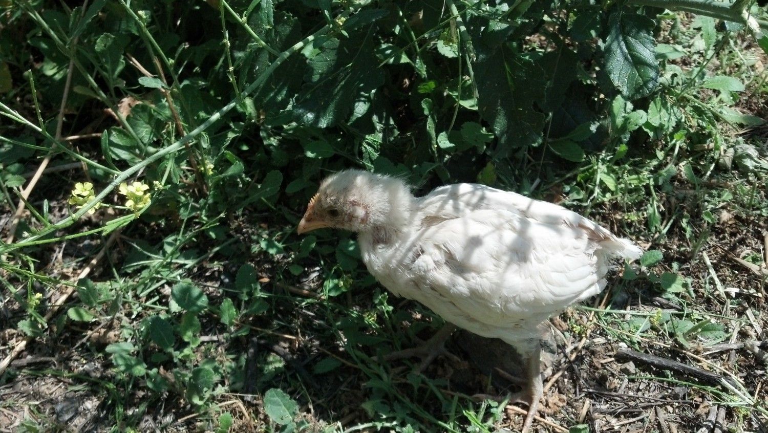 This is Ede. I had to separate her from her other 7 in the clutch who were picking on her. She had bloody feathers and a dime size piece of skin missing. I put eggshell membrane on the wound and put her into the bathtub under a heat lamp. This is how she looks today 24 hours later. Cannot wait to put her back but she needs to grow up a bit. She is now 4 weeks and a little behind but catching up