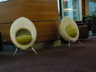 I wonder if they could travel back as "luggage"?!The chairs are in a bar in France? Road trip?