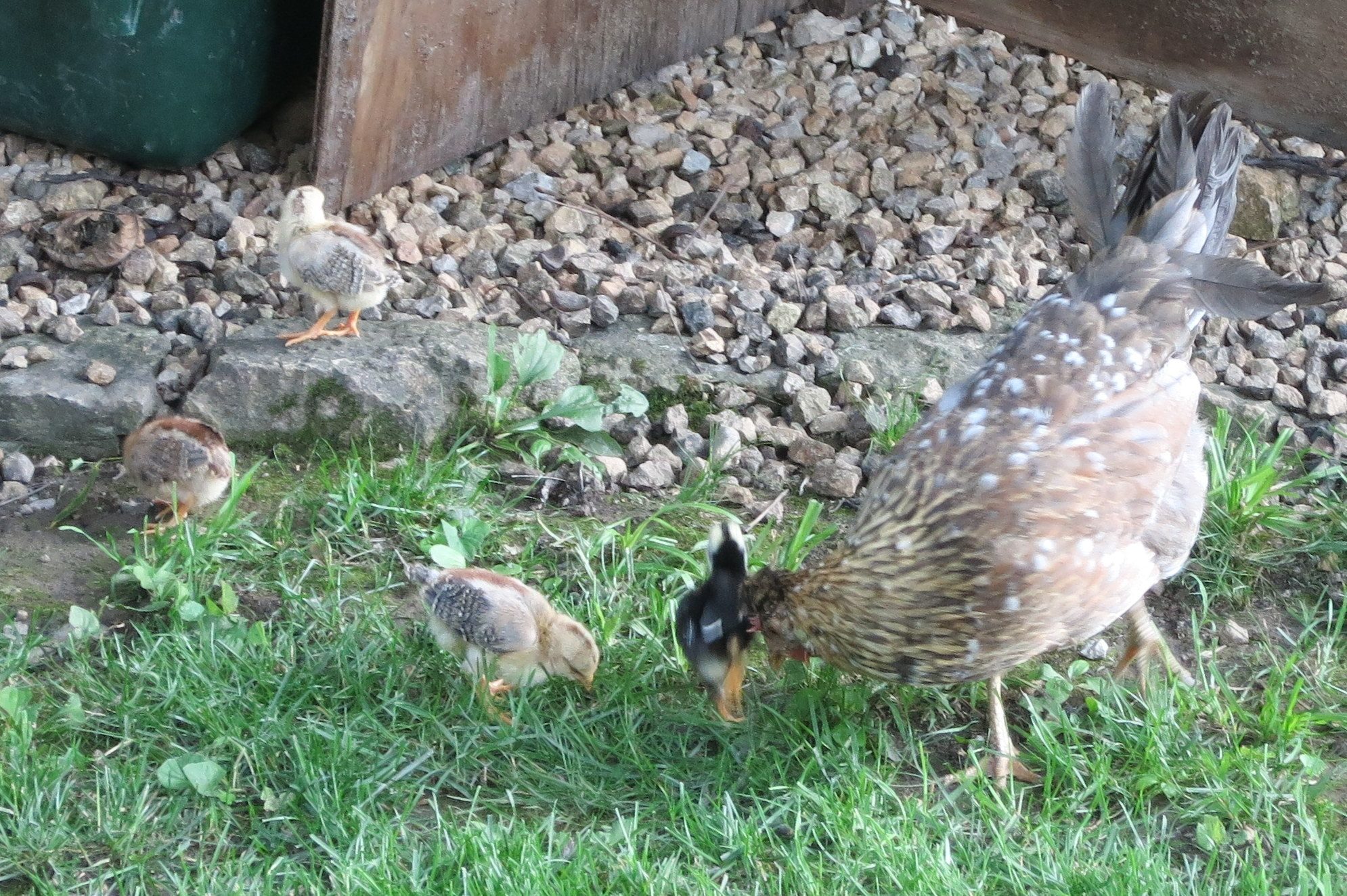 Egla taking her 4 Forsaela/Falki chicks outside for the first time...