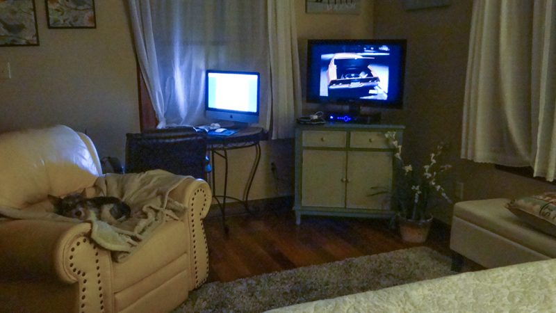 It is going to be a week at the least until our downstairs A/C is fixed so I moved my computer upstairs to me bedroom. Here we are tonight, blogging.