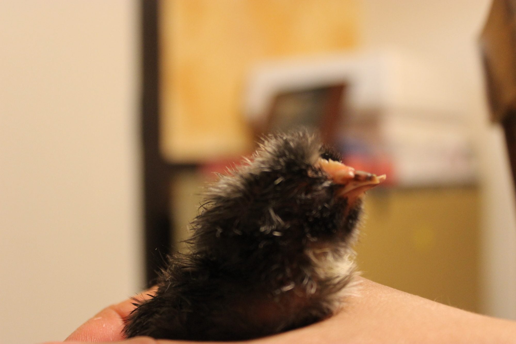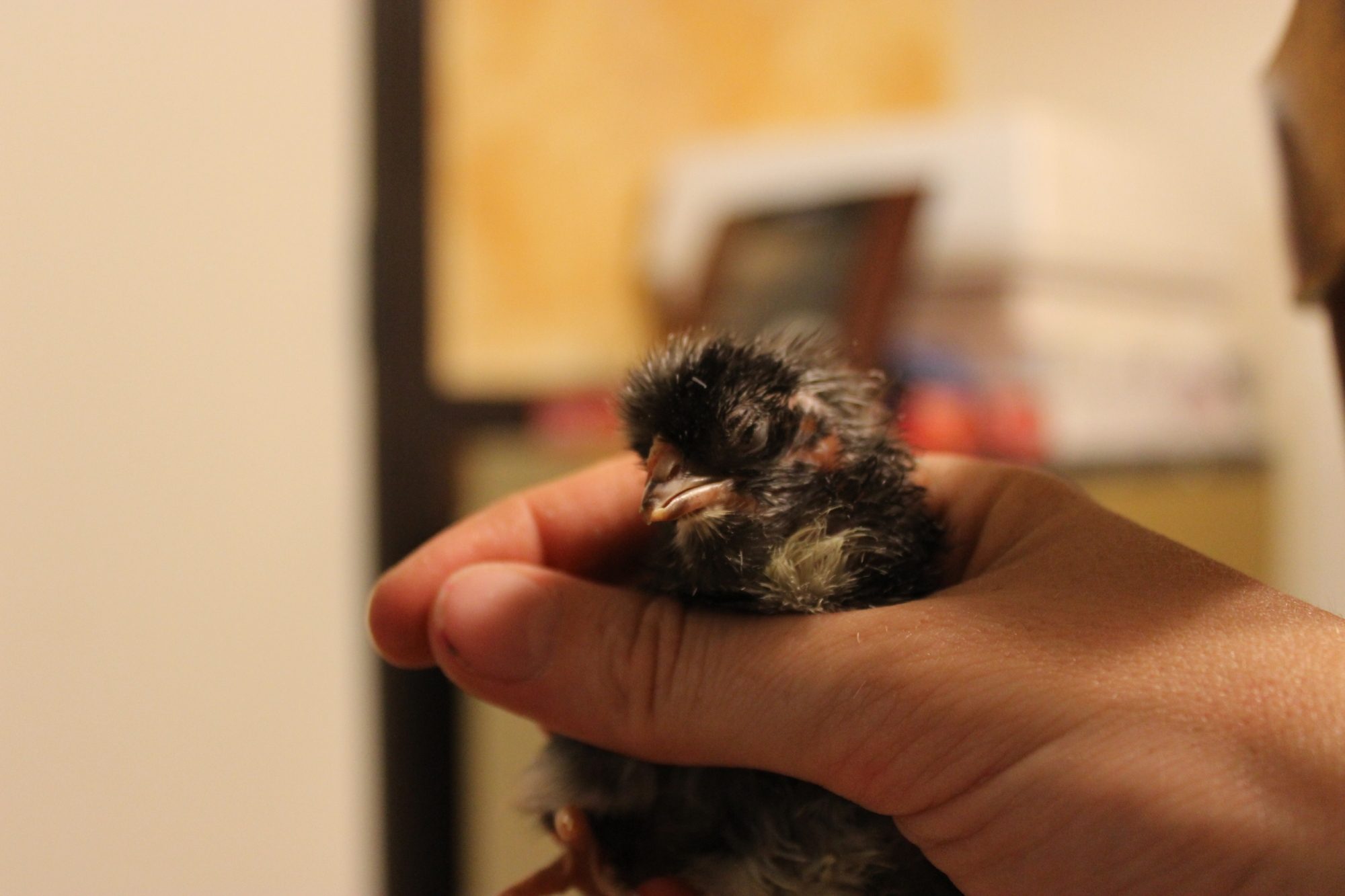 I'm just full of new experiences lately, I tell ya! Had a hatch Wednesday-Thursday, and got the strangest deformity I have seen in my own hatches. "Quasimodo" has only one eye socket, the other side has a partial slit for the eye but no eye, a deformed skull, and a strangely twisted crossbeak. He keeps his normal eye closed most of the time so I'm not sure if he can see out of it. I don't expect him to live long. If he starts to struggle I will put him down. He is an olive egger (Cream Legbar X Black Copper Maran).