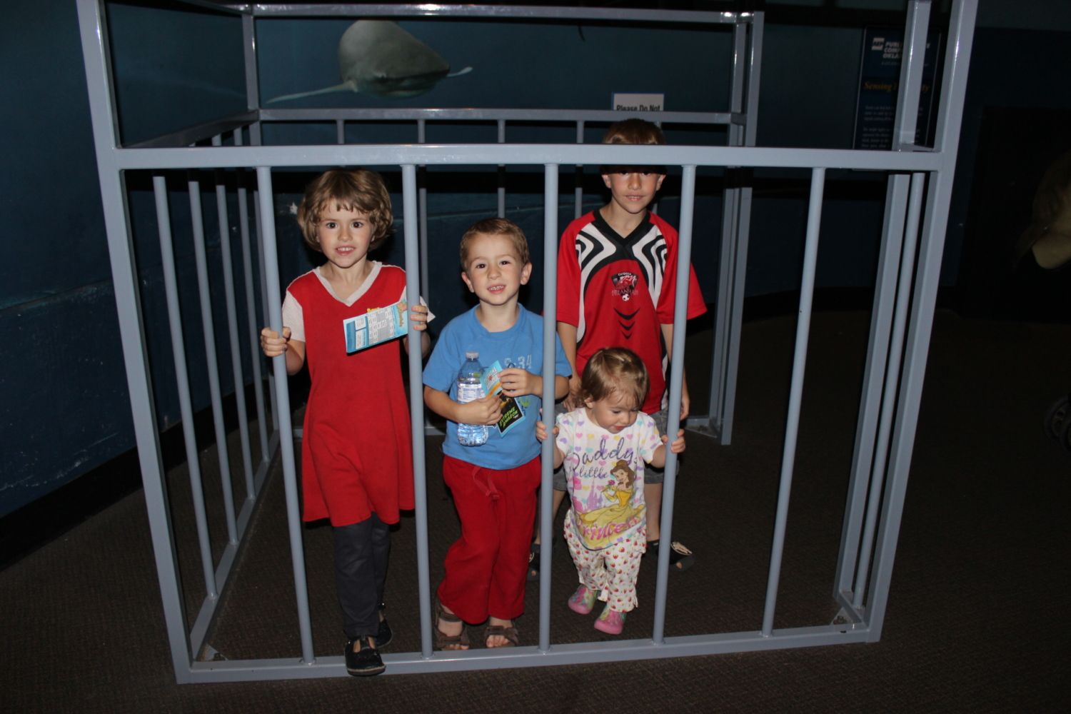 Wait, what's wrong with that picture? Ah of course, those crazy kids belong in a cage! (testing out the shark cage).