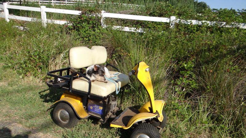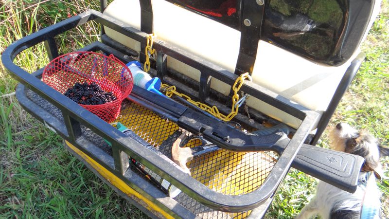 So I grabbed Tucker and headed out on the Cricket to the corner of our property on the road to pick berries. Guess what? The deer beat me to those.