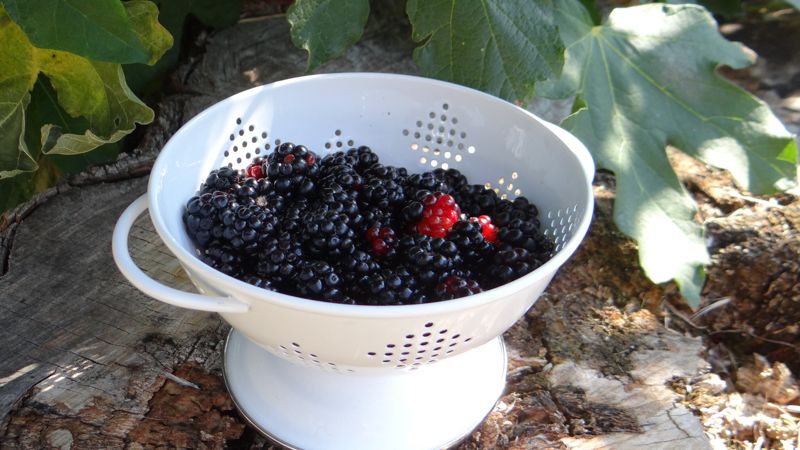 I went berry picking this morning. I have a huge blackberry patch loaded with big ripe blackberries. This is one corner of the big patch.