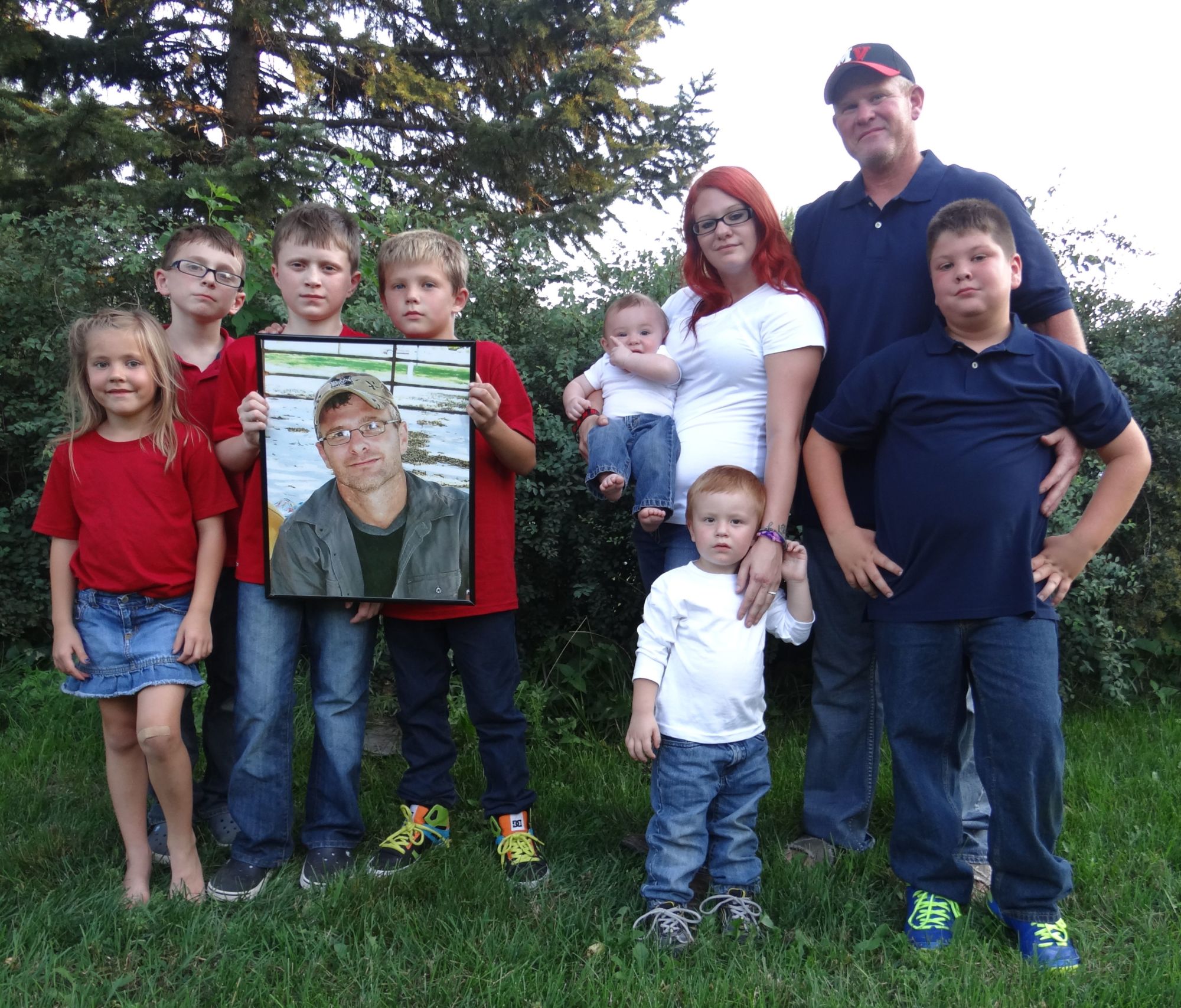 Nice family photo- I love the red, white and blue! The kids must miss their Dad so much.