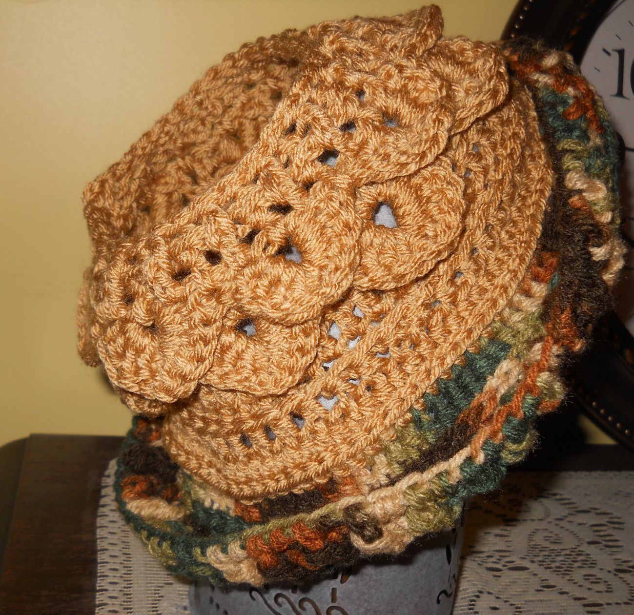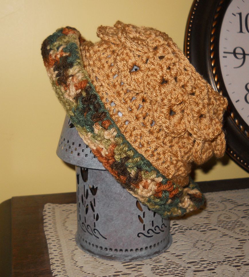 Ladyhawk has a beautiful teenage daughter who can model her crocheted items for photographs. I have only myself and the chickens (hmm, wonder if Rita would model a cowl for two seconds for a photograph, lol?) so I have to resort to taking photos of a turtleneck on a hanger or ones like this, which didn't work with a shirt. This hat was photographed on a candle holder, then on myself, but you see how much of me I left in the pic, don't ya?
