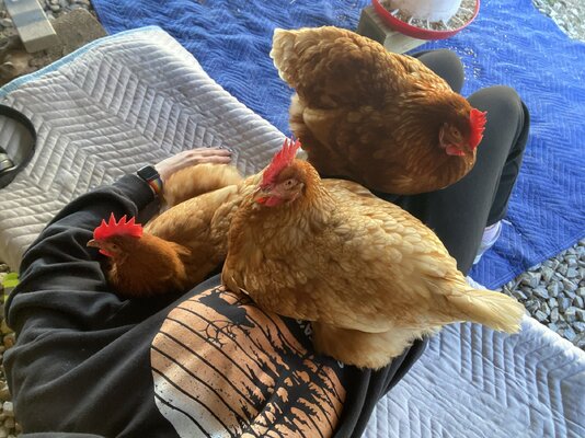 so ive posted this before but im just getting worries for my girls i have theee isa browns there 1 year and 1 month old its april and there still not laying any eggs and thats all three of them they look and act completely healthy ive attached picture below there combs and wattles are bright red, they eat and and drink plenty they act energetic and happy can someone please help! and yes my girls love to cuddle lol