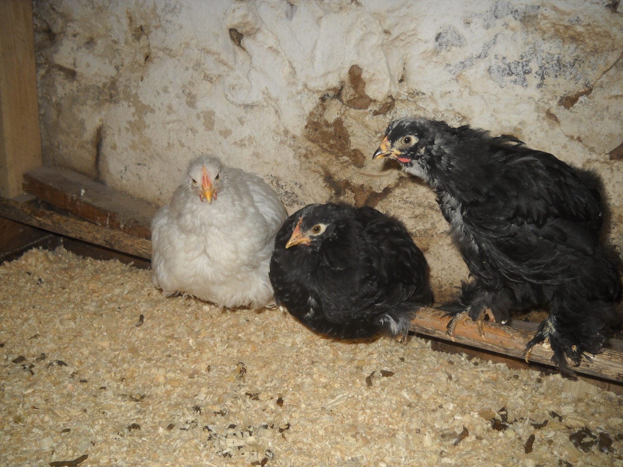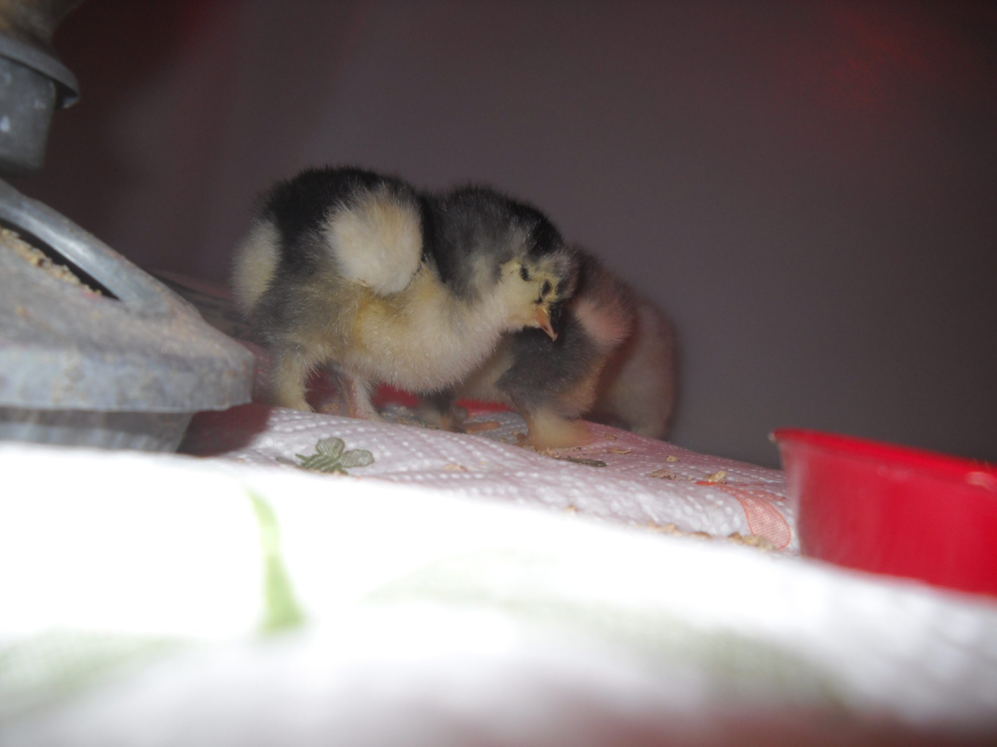 We are setting Black Cochins. Here is a shot of the two black cochins and one Splash cochin, when we got them last January. it turned out that all the cochins we bought as day olds last year were roo's, I started collecting last Sunday, and have 4 eggs so far that are pure Black Cochins I'am hoping to set at least 6 but the more the merrier.