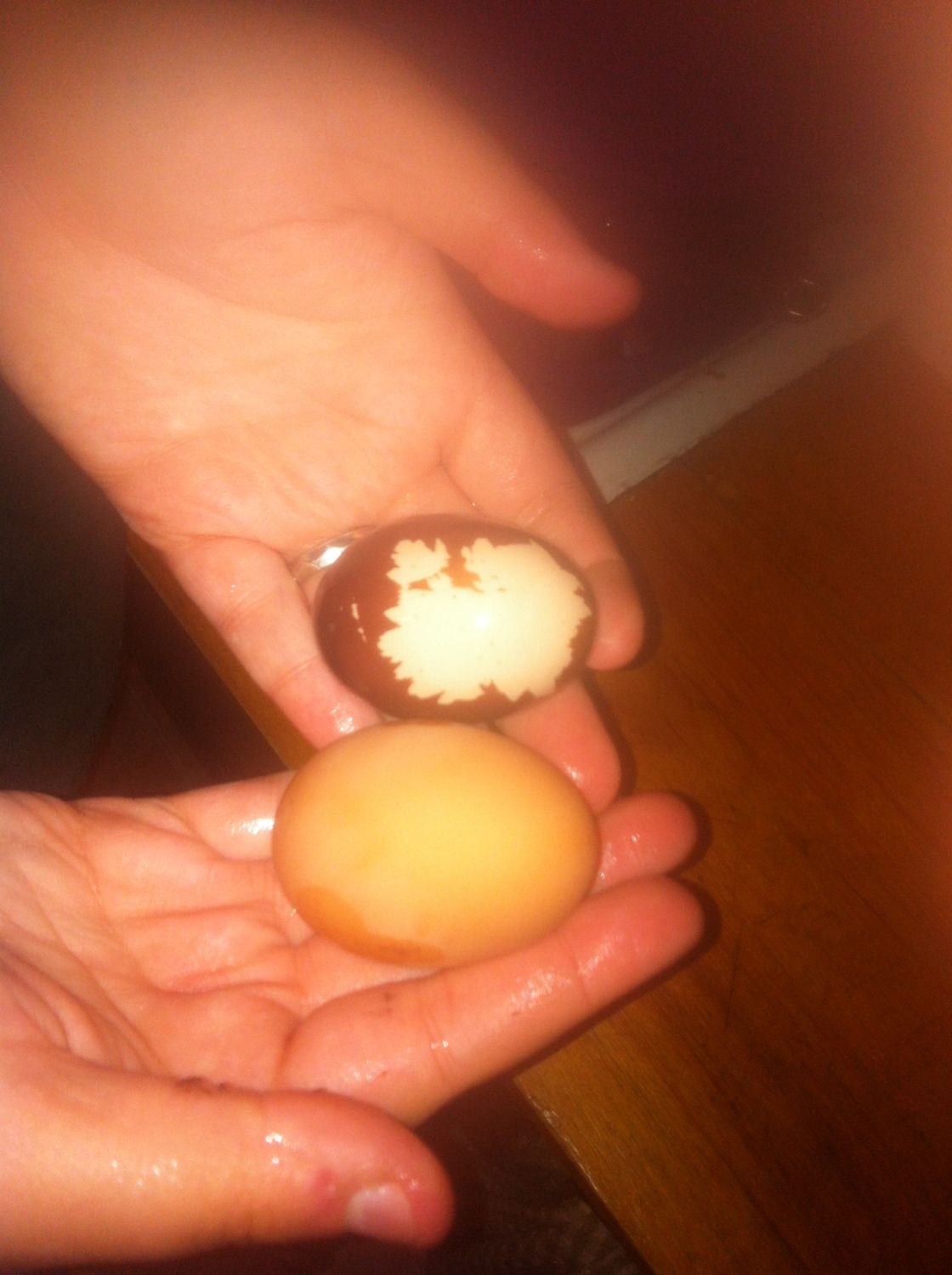 The coating on my Marans eggs is really delicate. I can't scrub at all, and even handling them much while wet can cause the dark brown to wash off. I wonder how many of my customers think I dye them or something...