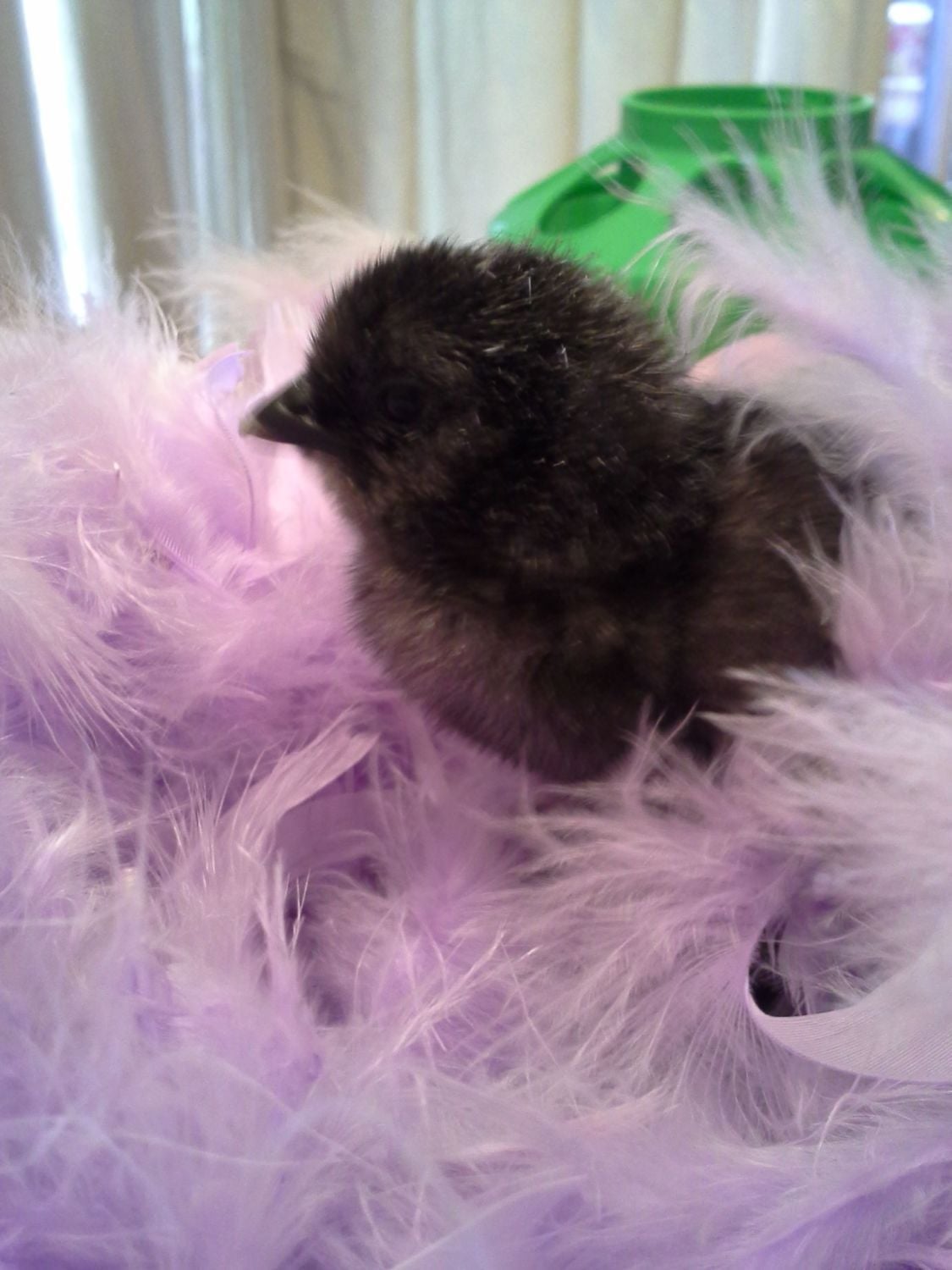 A couple weeks old with their adopted mom (real mom was the blue andalusian)