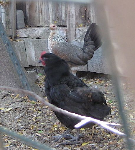 She is still in my hens' yard this morning. I was happy when she actually ate some fodder that I threw it in her area. I recently acquired a nice little black Australorp, and the two are pretty much always together now.