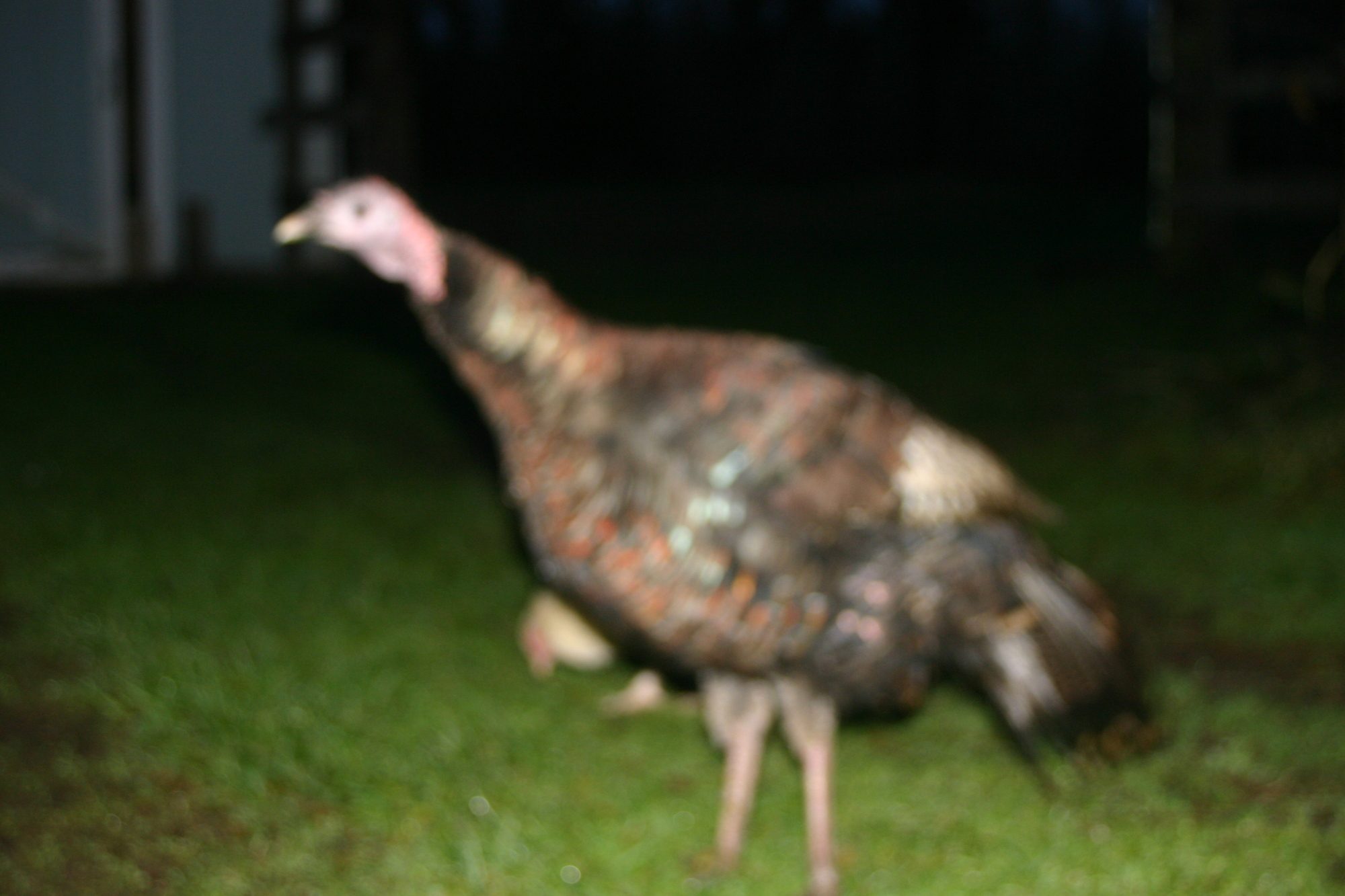 good luck catching it! if you arent familiar with turkeys, they are very very strong. their wings will whoop you all the way across the yard if they get one free while you're holding it. i got a black eye from a turkey wing