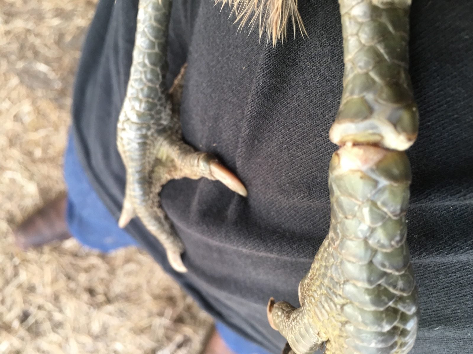 I'm checking the rest of the flock to make sure, it looks like she found twine somewhere while roaming.