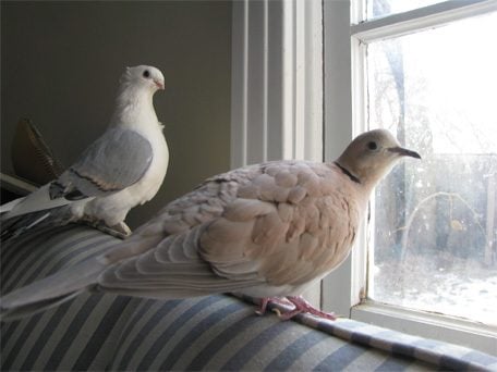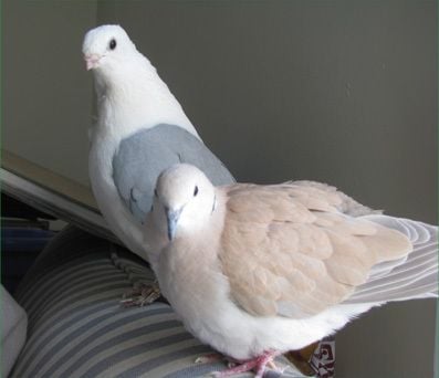 Both birds are in good health. Our ringneck dove needs her back nail clipped every so often as it grows upwards though. They are happy indoors (if provided with sunshine) or outdoors, and are currently being housed in an outdoor cage to ensure they can go to an outdoor home properly adjusted to the weather. They would do fine in a loft.