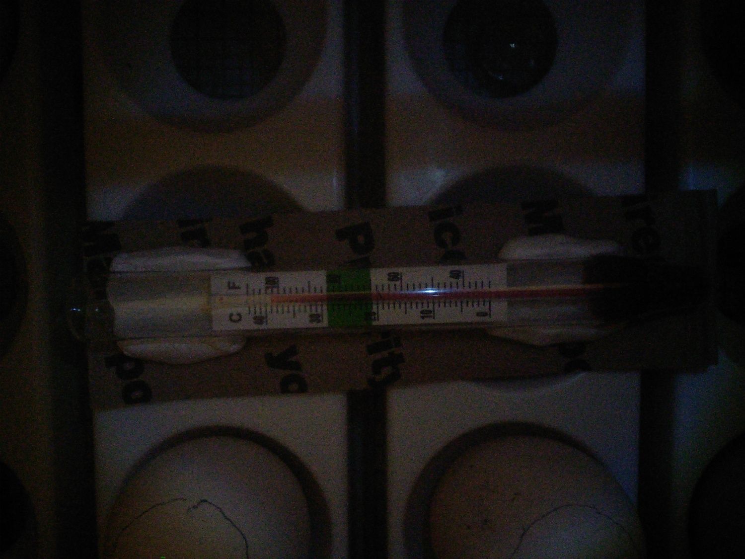 That's fantastic. I use an aquarium thermometer as well, along with a metal one and a digital. I have a forced air, so the thermometers are sitting on the wire mesh at the bottom. You've got me thinking perhaps I need to get another one and place it on the top of the eggs too.